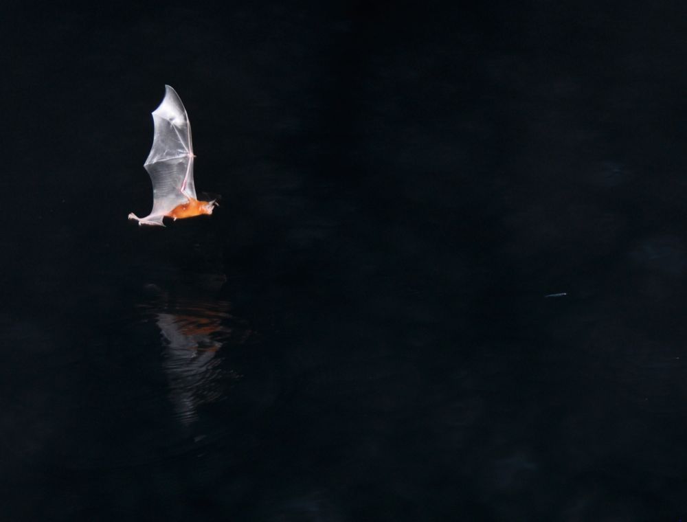 Bulldog bats fishing off the back of the boat at the anchorage at Isla Contreras in Coiba National Park.
