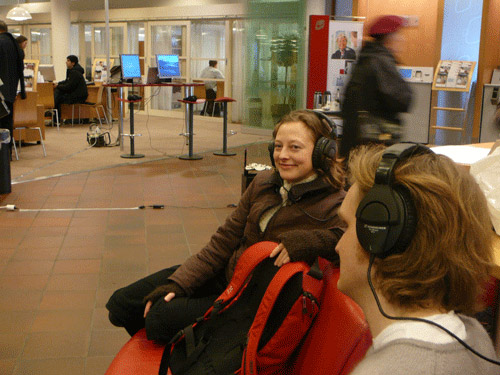 Jana also sent small samples of melting ice sounds by Bluetooth to the public in the bank, for them to bring home or to play together as miniature public concert by mobile phone.